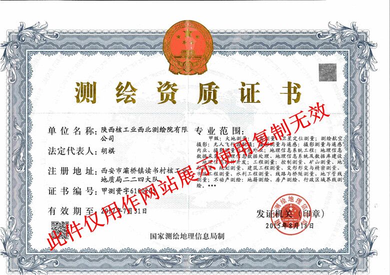 在公司领导的大力支持下,在陕核西北测绘院全体职工的共同努力下,测绘院资质由乙级成功升为甲级。