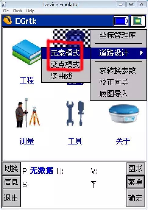 下面介绍RTK道路放样的全过程。仪器标配的工程之星软件中整合了道路设计的功能,无需额外安装软件,就可以满足一般情况下道路设计工作的要求,道路设计的方法有两种,即元素法和焦点法。