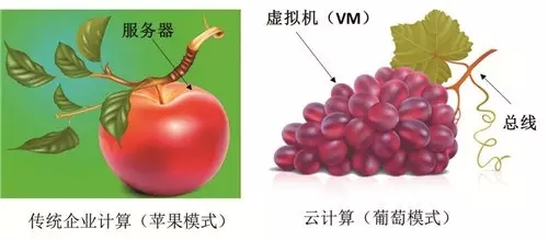 地理信息系统将成为行业或区域政务云中的一个功能区,地理信息系统的架构将从服务器垂直扩展为核心的传统企业计算模式(苹果模式)转变为虚拟机(VM)水平扩展为核心的云计算模式(葡萄模式),如图6所示。