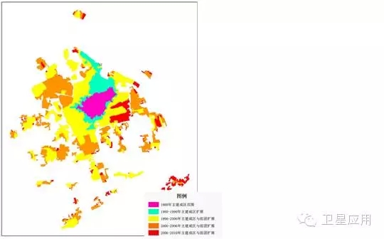 北京1978-2010年建成区面积由161km²增至1734km²,城市扩展了近11倍。北京建成区如图1所示。