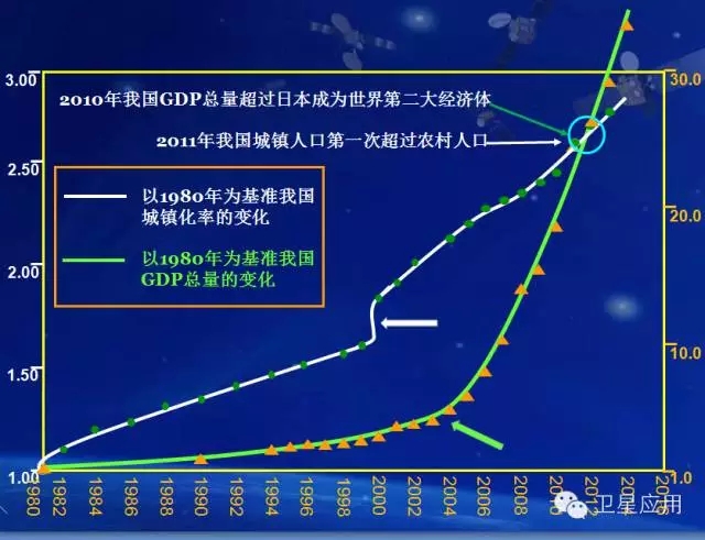 中国GDP逐年增长与城镇化的关系示意图如图4所示: