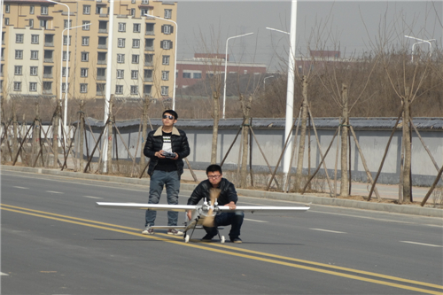 在飞行现场,操控手对“陕核鹰”的性能及相关参数进行了详细介绍:“陕核鹰”全长2.05米,翼展长度2.6米,最大平飞速度110km/h,飞行海拔可达4000米,拍摄照片地面分辨率达20厘米,飞行性能良好。在一切准备就绪后,“陕核鹰”带着所有人的期盼,以惊人的速度起飞并冲向天空;在500米高空,“陕核鹰”始终严格按照操控手设定的航行路线翱翔;两个时段后,“陕核鹰”安全平稳着陆。操控手将机身中的照相机取出,在场人员清晰地看到了照片中地面标识线等地物。最后,郑副总向在场人员宣布:“陕核鹰”首次试飞成功!