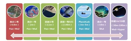 近几年来,随着信息和传感技术的飞速发展卫星遥感影像的空间分辨率已从10m-30m,提高到今天的1-2m,一些军用遥感卫星的空间分辨率甚至达到0.1m;光谱分辨率已达到5~6nm,包括高光谱在内已超过400个波段;重访周期(时间分辨率)也在不断缩短。