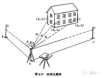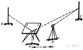 如图,平板仪和经纬仪距离一两米。精确测出两者的差距和偏角,然后按照比例尺在图上绘出经纬仪的位置,再从图上的经纬仪点出发,按照比例标出三维数据。