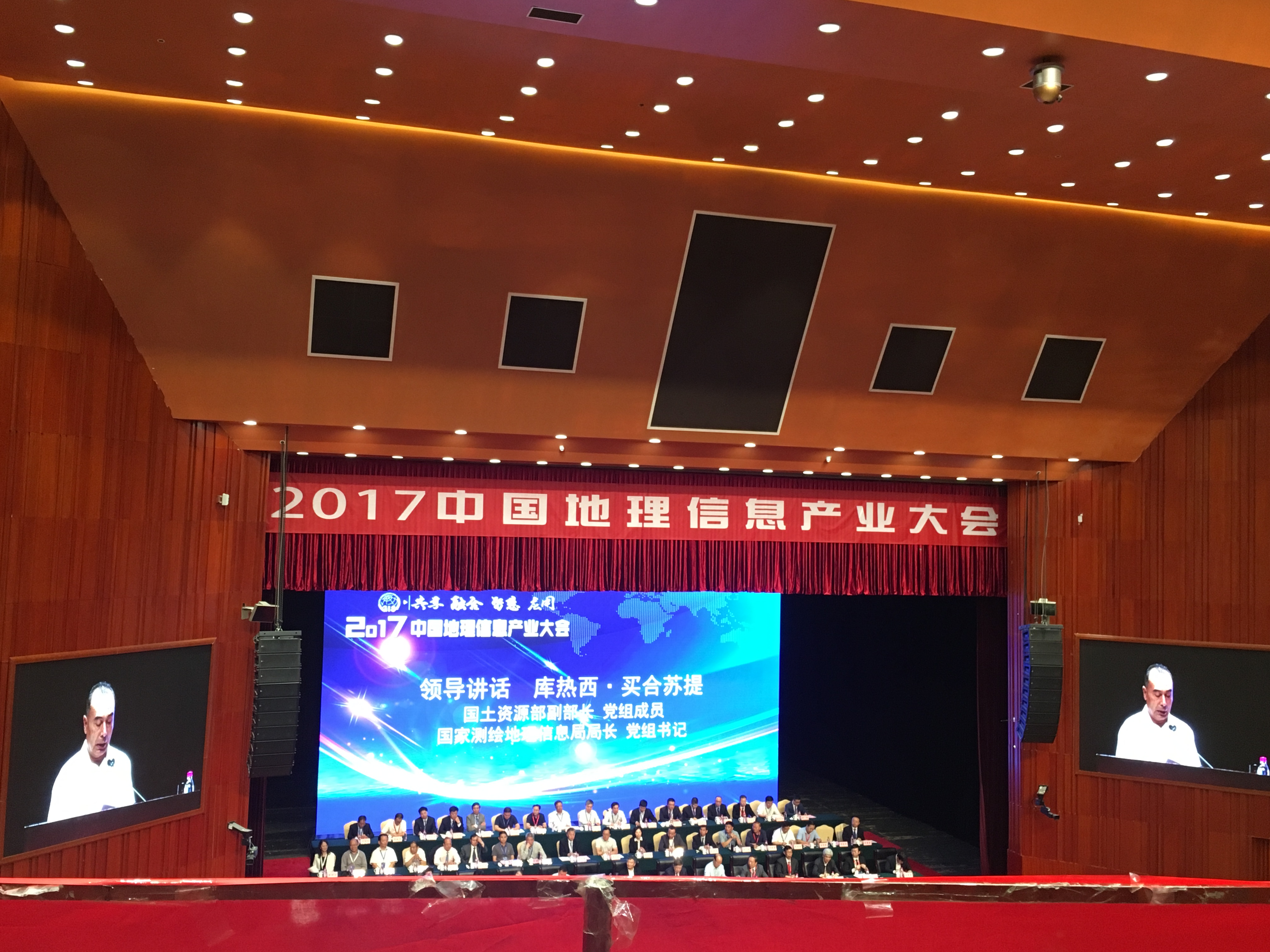 库热西在讲话中指出,在全球信息化进程加速和经济形势复杂严峻的大背景下,我国地理信息产业实现了逆势上扬,发展势头十分强劲。新修订的《测绘法》营造了良好的法制环境,地理信息产业融合发展趋势加快带来严峻挑战,维护国家地理信息安全提出了迫切要求。希望产业各界围绕推动地理信息共享应用、提升核心竞争力、促进地理系信息产业迈向中高端等重大问题,深入探讨,建言献策,为壮大地理信息产业贡献智慧和力量,抢抓机遇、乘势而上,做强做大我国地理信息产业。