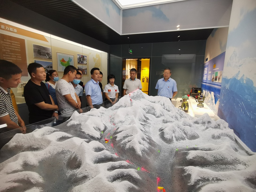 8月12日上午,中陕核二二四大队副总经理、中陕核测绘院总经理胡祺作为领队,带领中陕核测绘院、地调院、工勘院、214大队、211大队等五家测绘单位(2家甲级,3家乙级)负责人及骨干技术人员近30人集体参观国测一大队精神展示室,现场聆听2020珠峰高程测量队员的事迹报告,在历史与现实的感悟中学习身边典型、汲取榜样力量。
