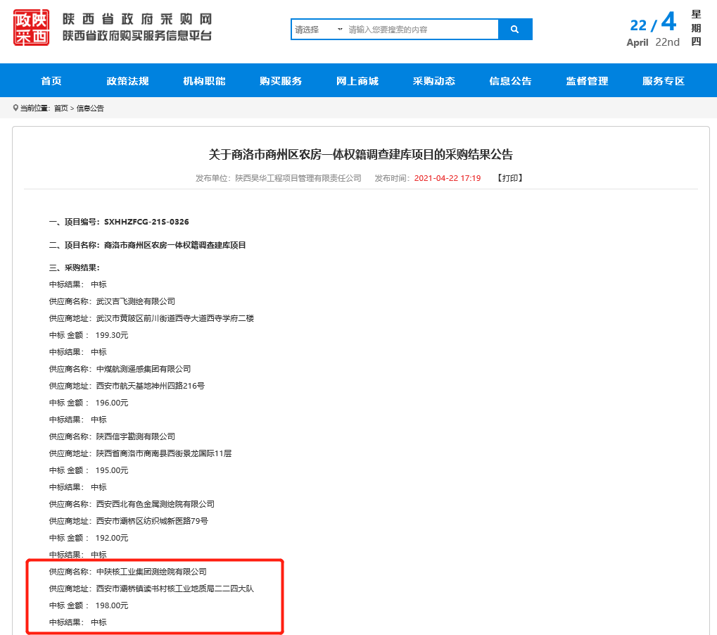 五一国际劳动节来临之际,在公司领导班子支持下,在经营发展部和新疆分公司同仁的努力下,再次传来中标喜讯。中陕核测绘院凭借突出的业绩、雄厚的技术实力以及良好的市场信誉脱颖而出,成功中标“商洛市商州区房地一体权籍调查建库项目第七标段”。