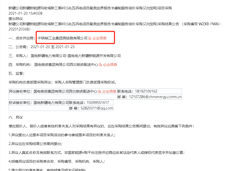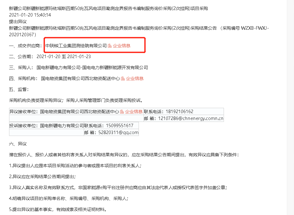 1月20日,新疆分公司传来喜讯,在这2021年的开篇时间节点上,测绘院连续中标“新疆公司新疆新能源玛依塔斯三期49.5兆瓦风电项目勘测定界报告书编制服务询价采购项目”、“新疆公司新疆新能源玛依塔斯四期50兆瓦风电项目勘测定界报告书编制服务询价采购项目”。