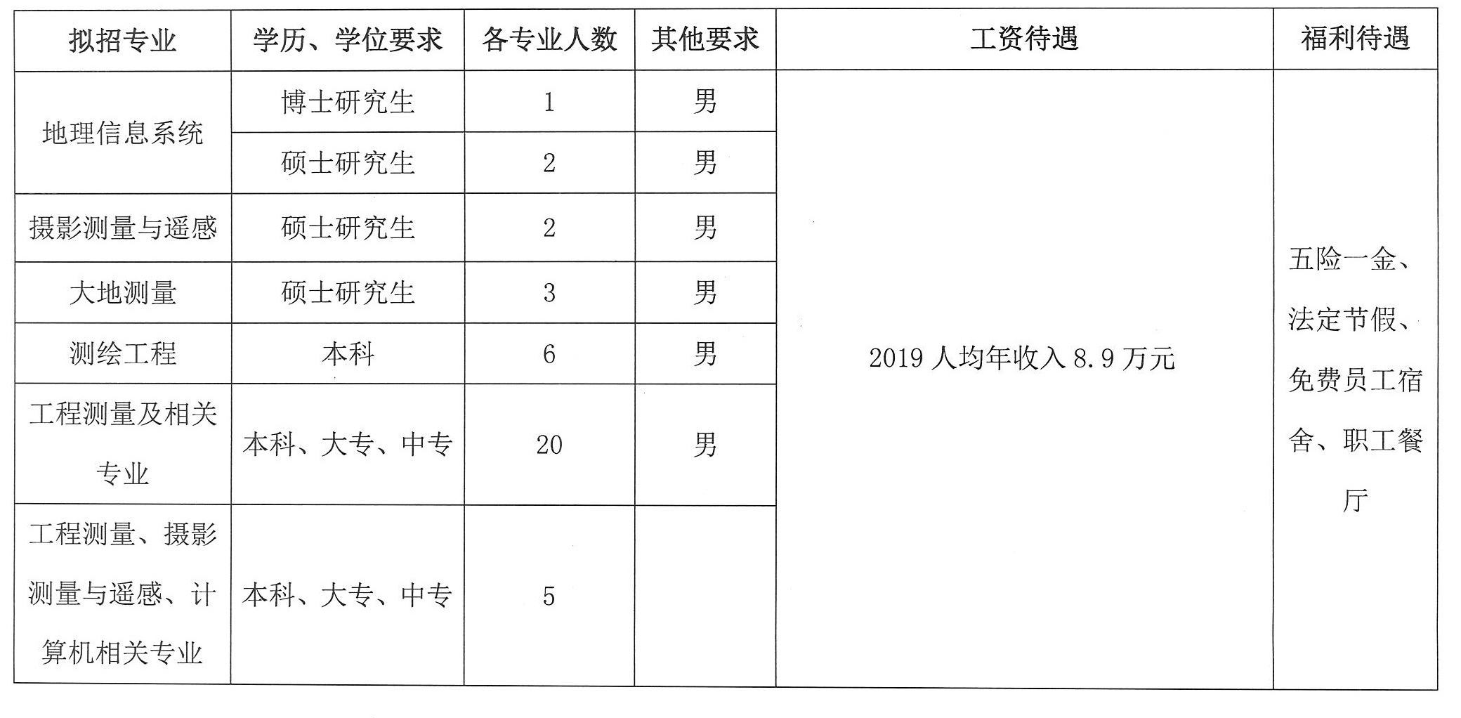 中陕核工业集团测绘院有限公司 2019年人员招聘计划
