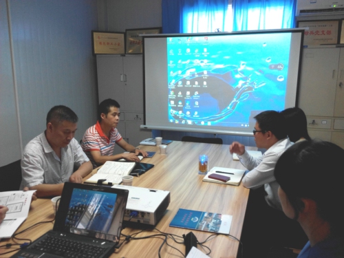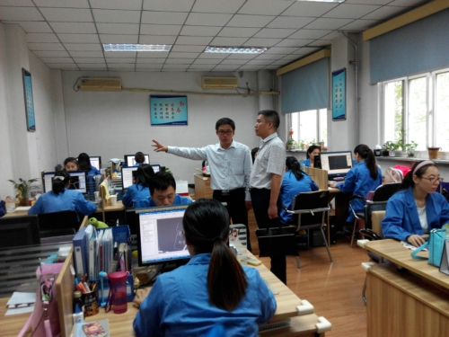 在航空摄影测绘院院长康荔的引领下,胡总首先对公司概况、业务范围等进行了了解。随后胡总一行参观了空三加密室、遥测编辑室、内业制图室等相关内业部门,并对其在地信方面的最新成果进行了观摩。会上,两家单位就项目生产、开拓市场经营范围以及优化工资劳务分配等进行了深入交流。