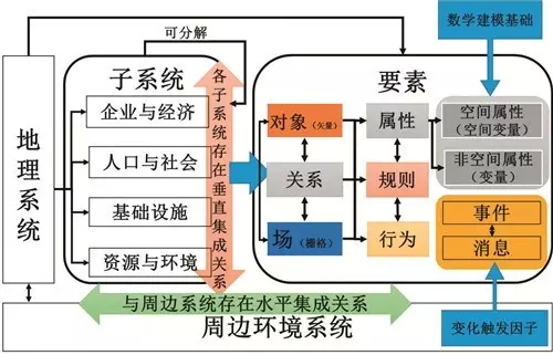 地理建模主要是基于地理信息或时空信息的数据结构或模型(如点、线、面、栅格)建立地理系统(或现实世界)的数字模型,通过数据的结构化将地理系统影射到地理信息系统中,实现数据或数字建模,数字建模也可以包括可视化建模,即地理系统数字模型的可视化。除了数字建模,还可以基于数字模型中量化的属性(变量)建立数学模型,分析、模拟、预测变量的相互关系和变化过程,探讨其中隐含的规则和规律,用于地理系统或其中的组成部分分析、模拟、预测和评价。地理学科的知识最终将通过对地理系统的数字建模和数学建模在赛博空间中实现统一,反过来促进地理科学的统一。