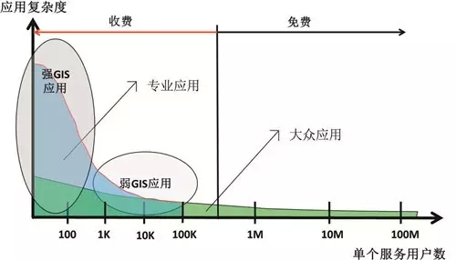 GIS应用复杂度与用户数及收费模式的关系如图5。