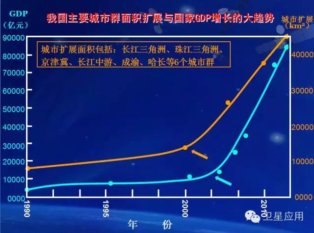 图3 我国主要城市群面积扩展与国家GDP增长的大趋势