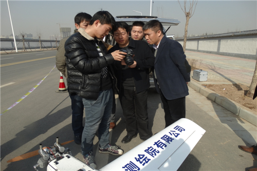 2月26日下午,二二四大队有限公司副总经理郑道斌带领相关科室负责人一行6人,在陕核西北测绘院总经理胡祺、总工程师方小龙等人的陪同下,来到神舟四路飞行现场验收测绘院自主研发的无人机——“陕核鹰”。
