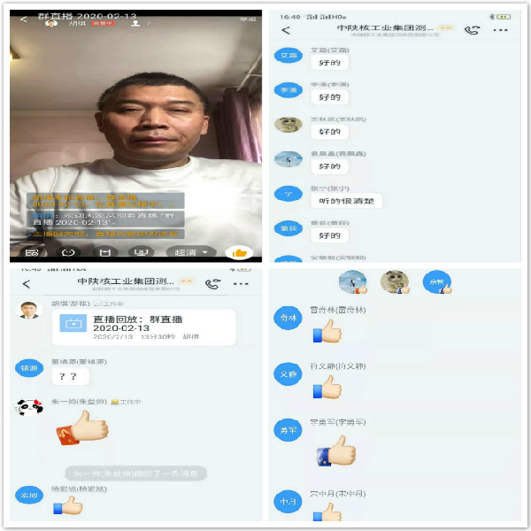 2月13日下午,中陕核工业集团测绘院有限公司利用“钉钉”线上直播平台,组织67名职工召开职工大会,对全力推进疫情防控和复产复工工作进行了再部署、再落实。公司副总经理王燕主持会议。