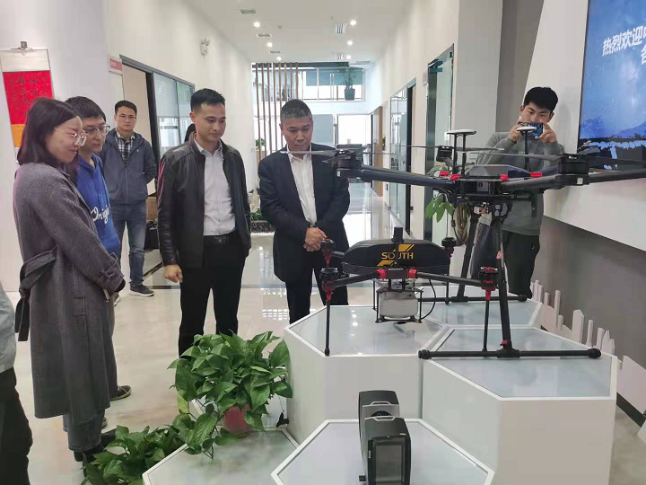 胡祺副总经理一行认真参观了南方测绘西安分公司的企业文化宣传墙、数据采集室、软件研发室、无人机和三维激光扫描仪、测量船等国内最先进的仪器设备。